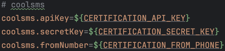 implementation("net.nurigo:sdk:4.3.0") // coolsms 의존성 주입